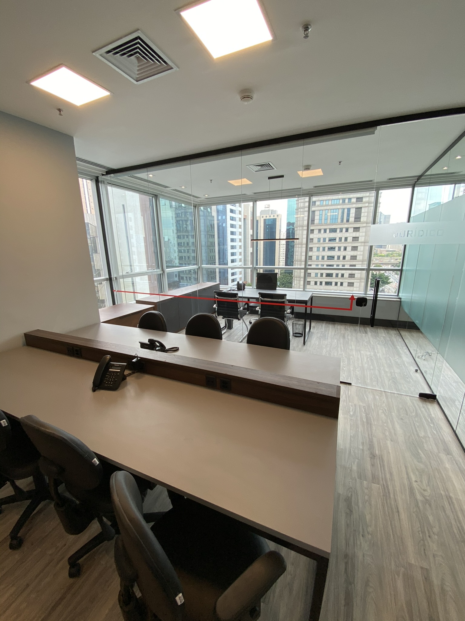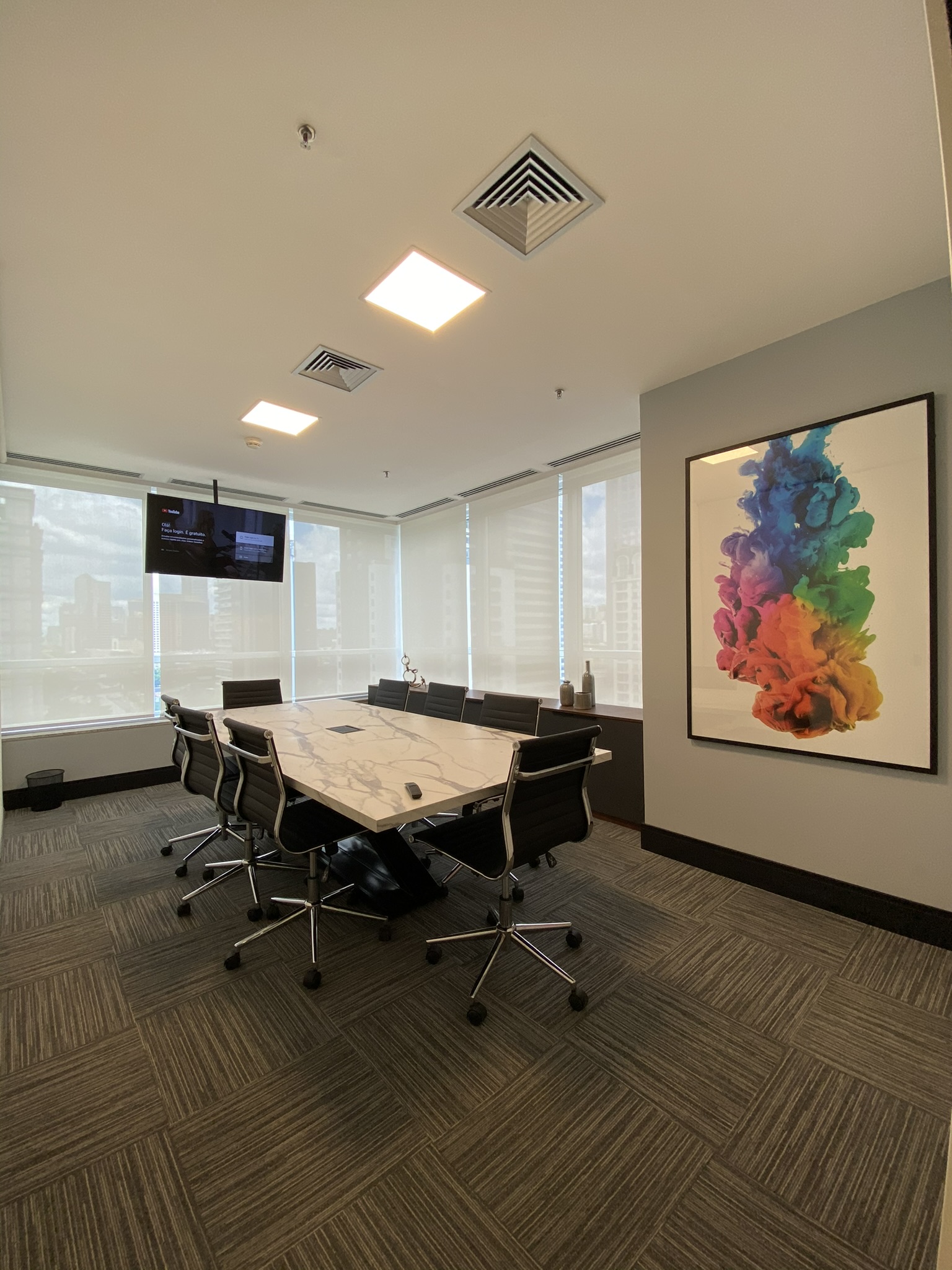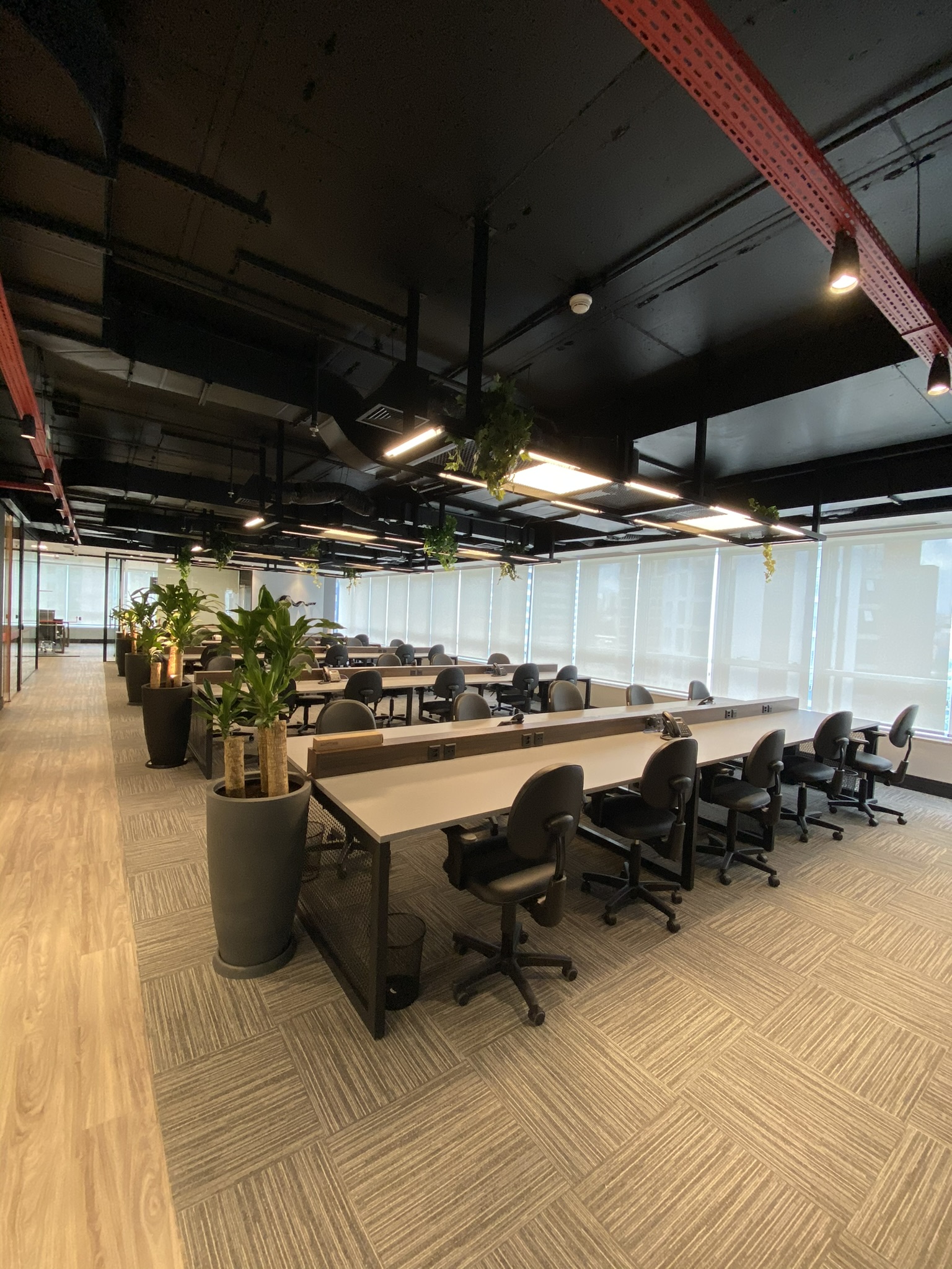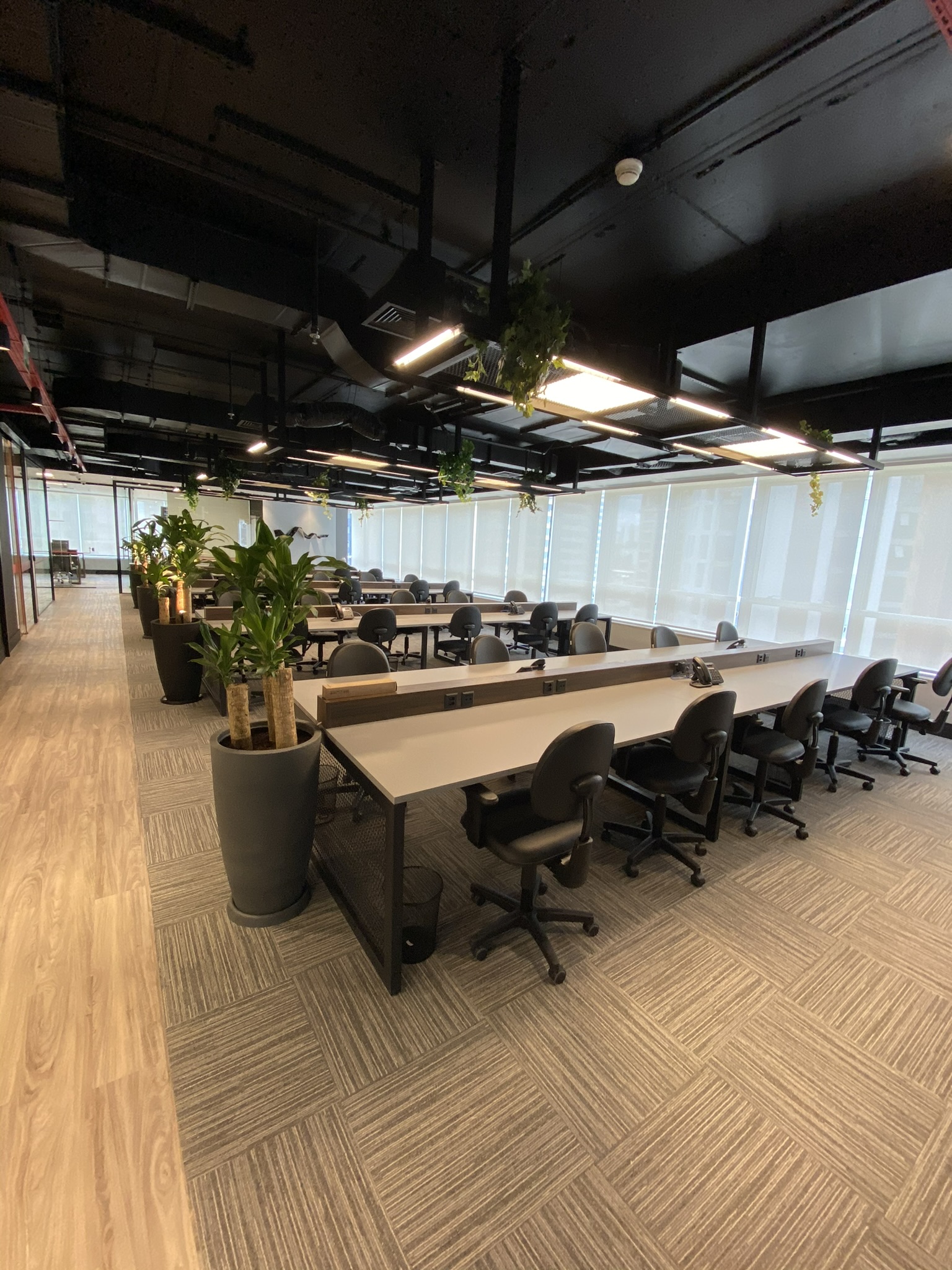 5 Mesas de atendimento, 7 Salas de Reunião e 24 Workstations