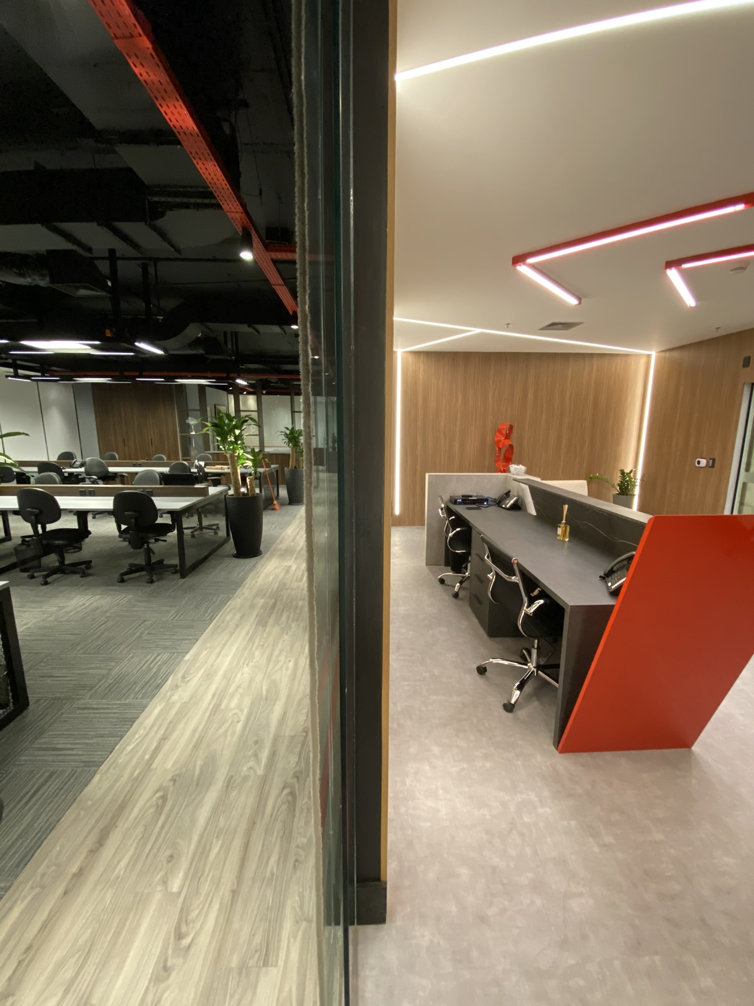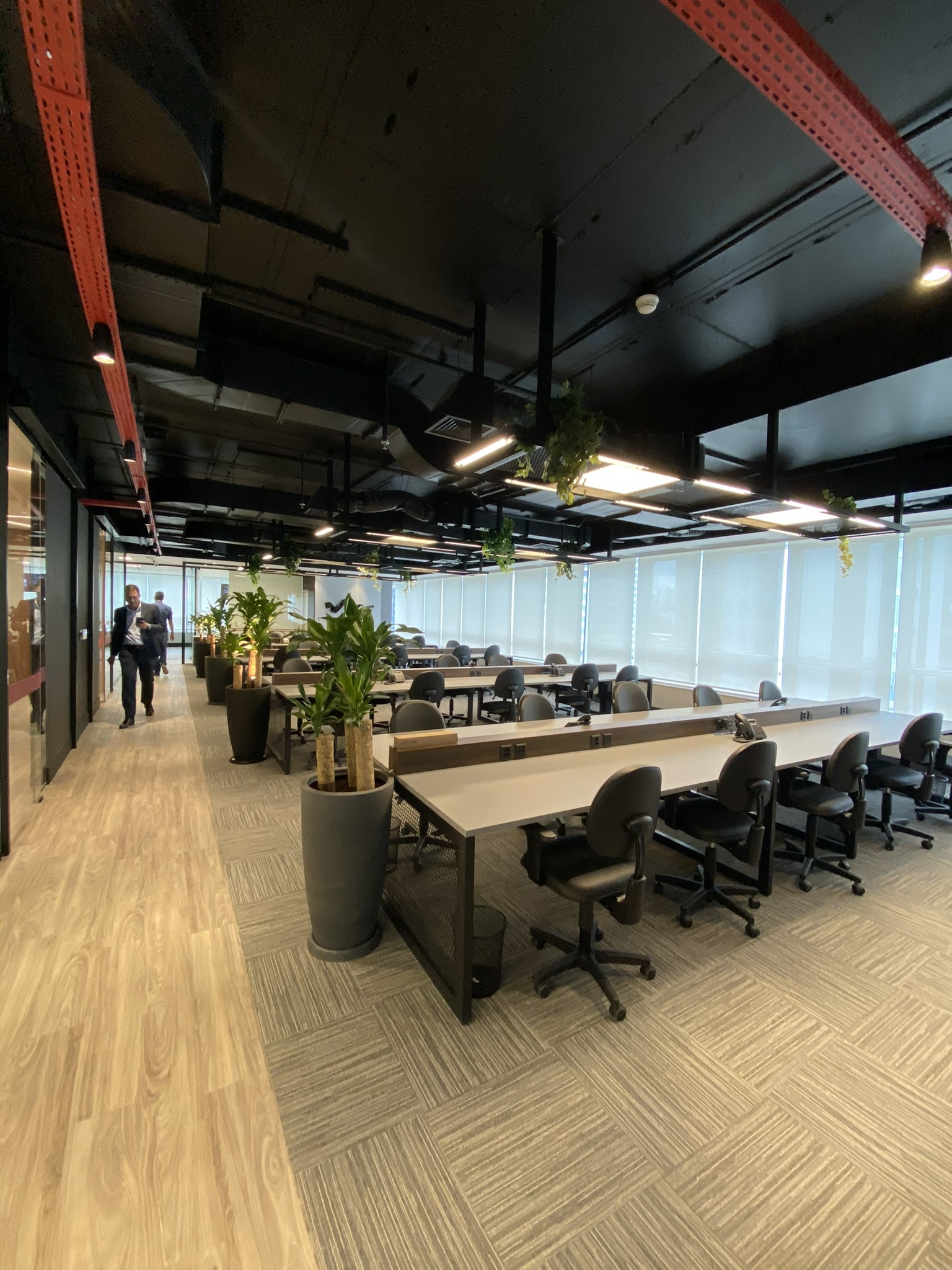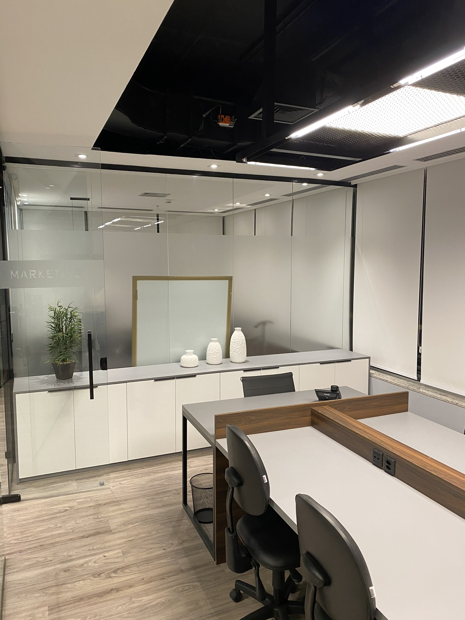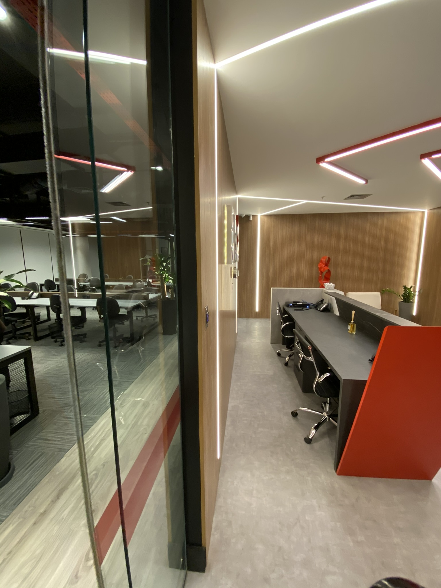5 Mesas de atendimento, 7 Salas de Reunião e 24 Workstations