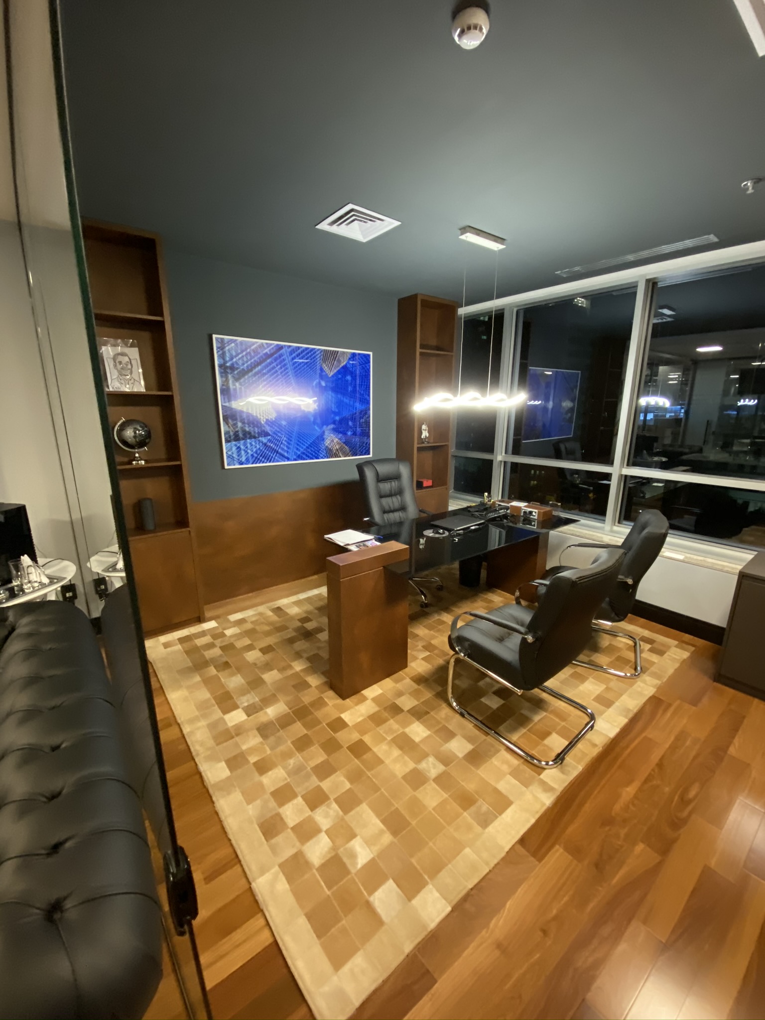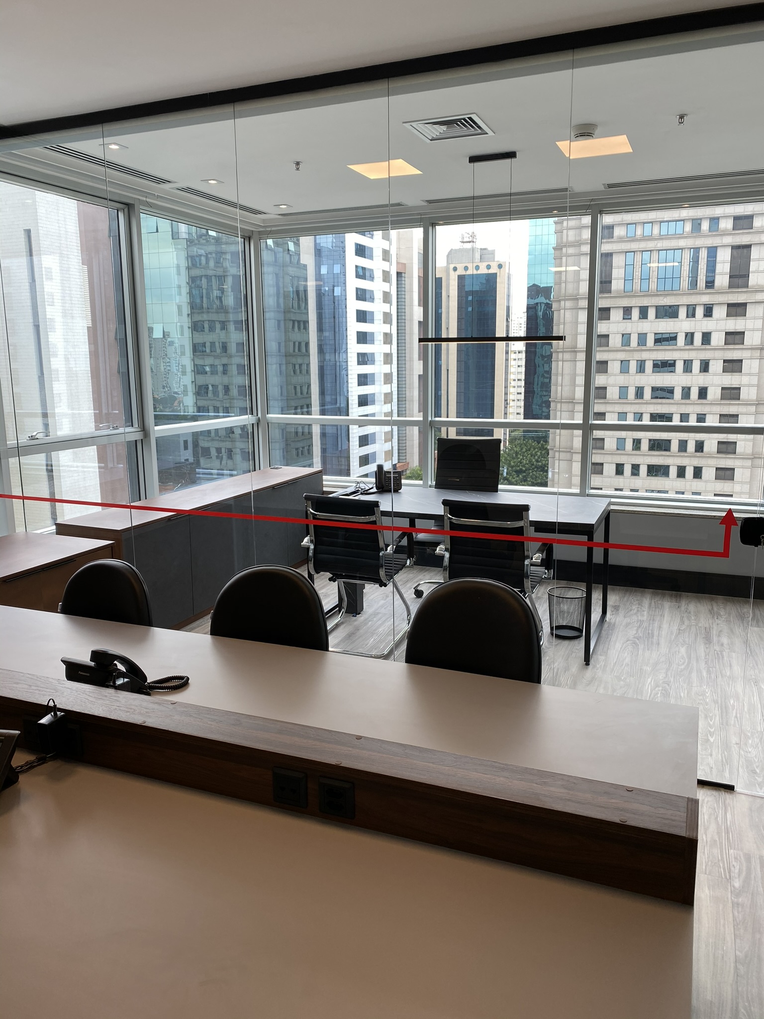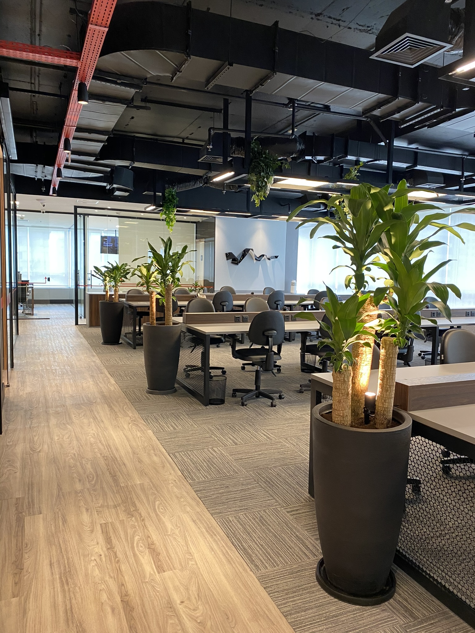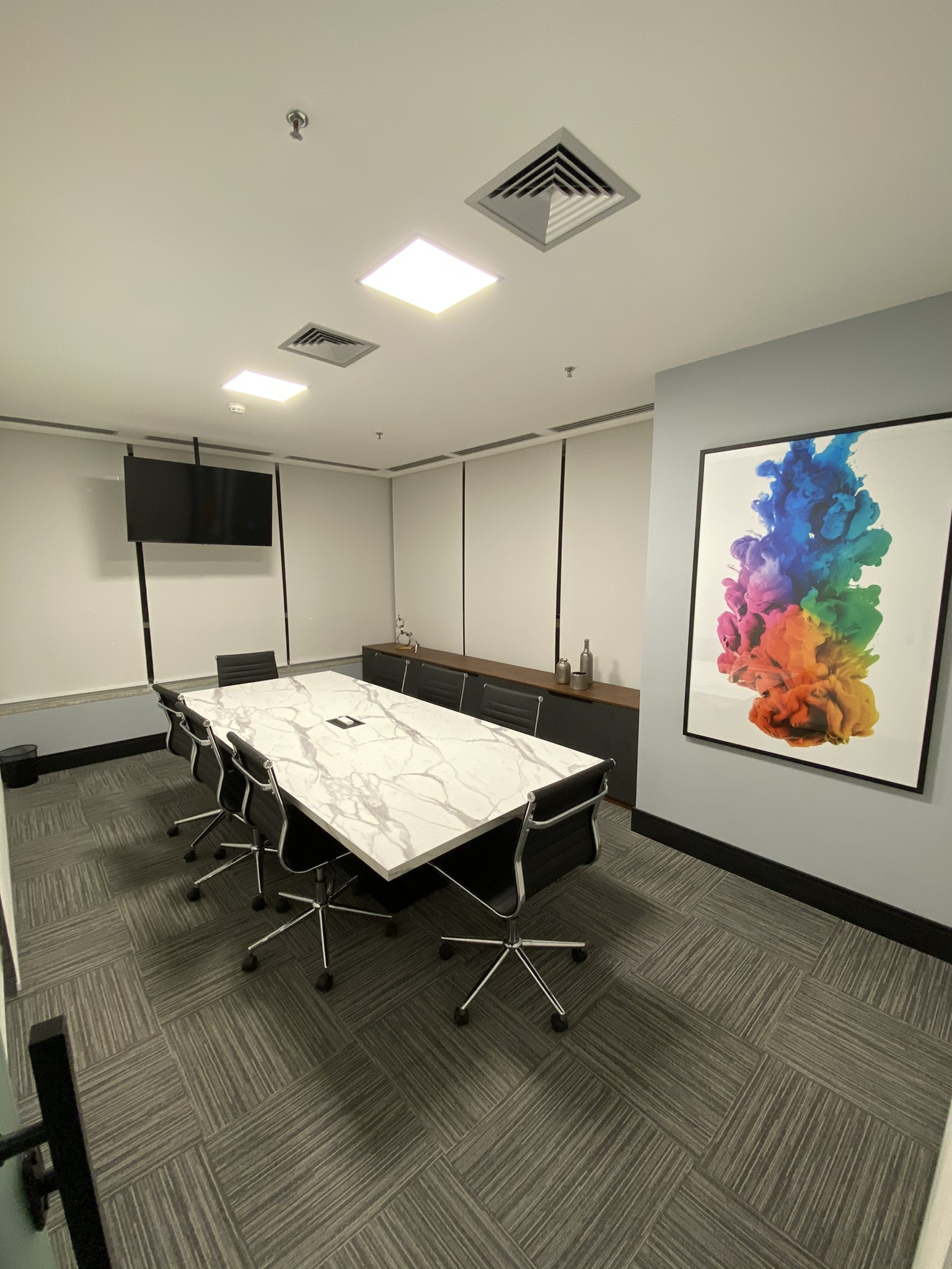 5 Mesas de atendimento, 7 Salas de Reunião e 24 Workstations